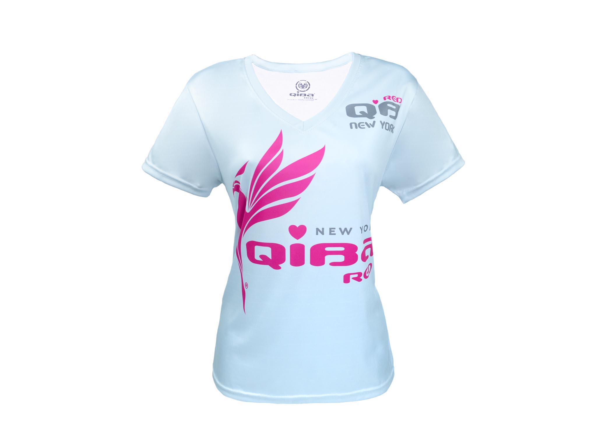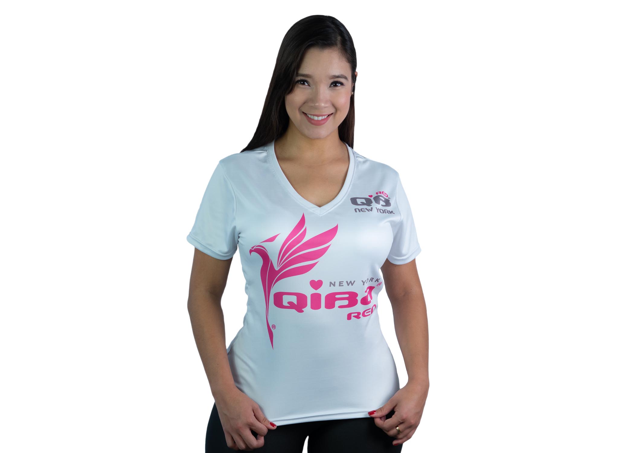 QIBA RED T-SHIRT (BIRD) POLYESTER WHITE V NECK