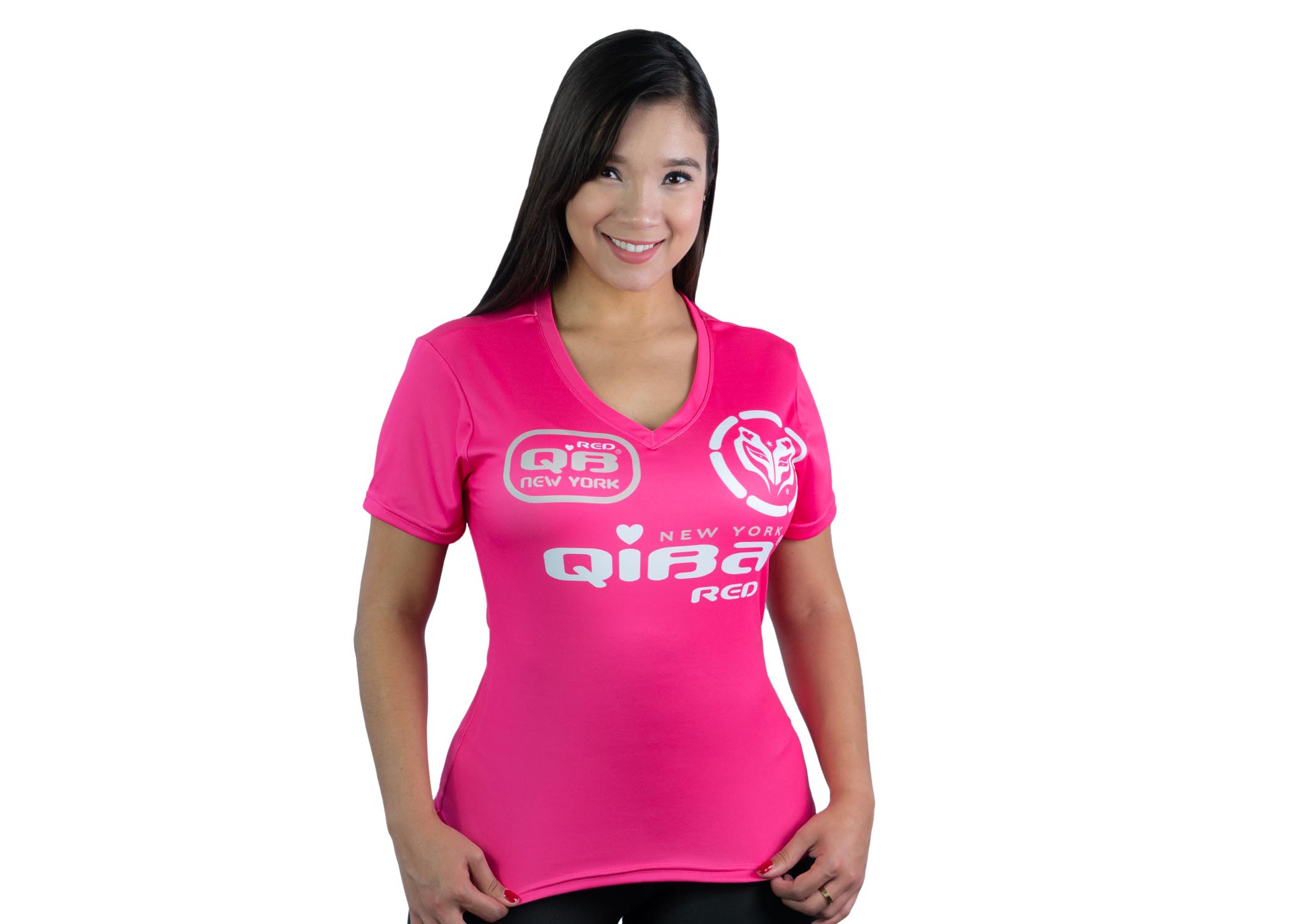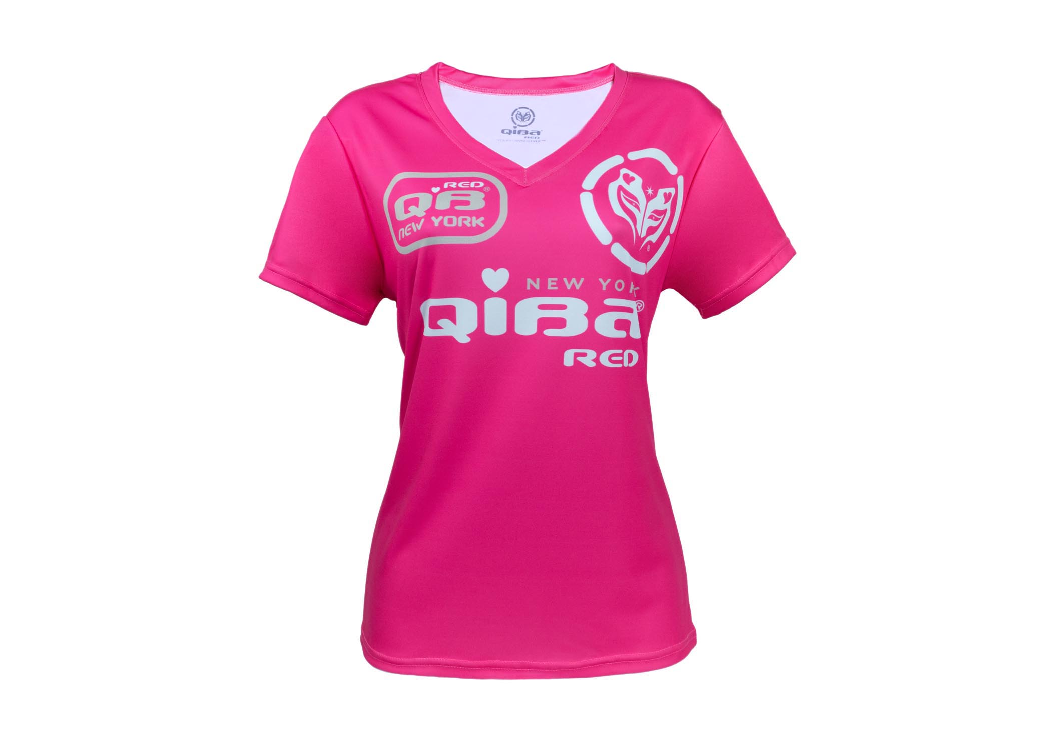 QIBA RED T-SHIRT (CAT) POLYESTER PINK V NECK